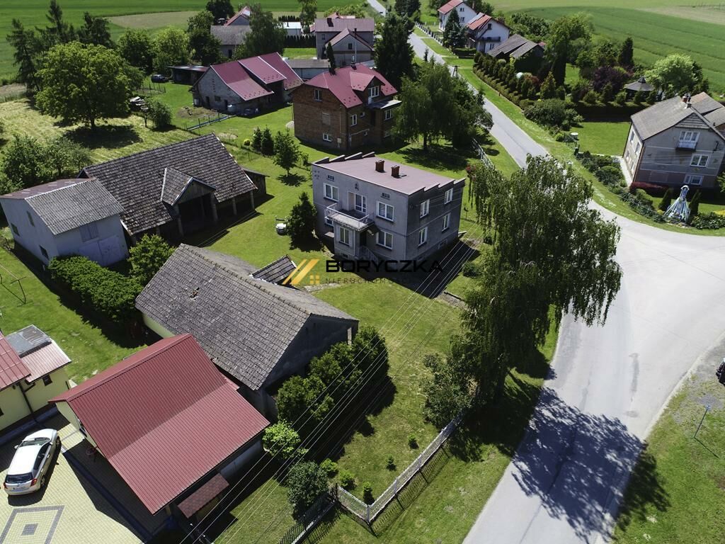 Dodatkowo na posesji znajduje się: duży, murowany budynek gospodarczy z kuchnią letnią, murowany garaż oraz drewniana stodoła. Zabudowania ogrodzone z dostępem do drogi asfaltowej. Dom położony jest w spokojnej okolicy, około 4 km od centrum Wietrzychowic gdzie znajdują się sklepy, szkoła, kościół i ośrodek zdrowia.